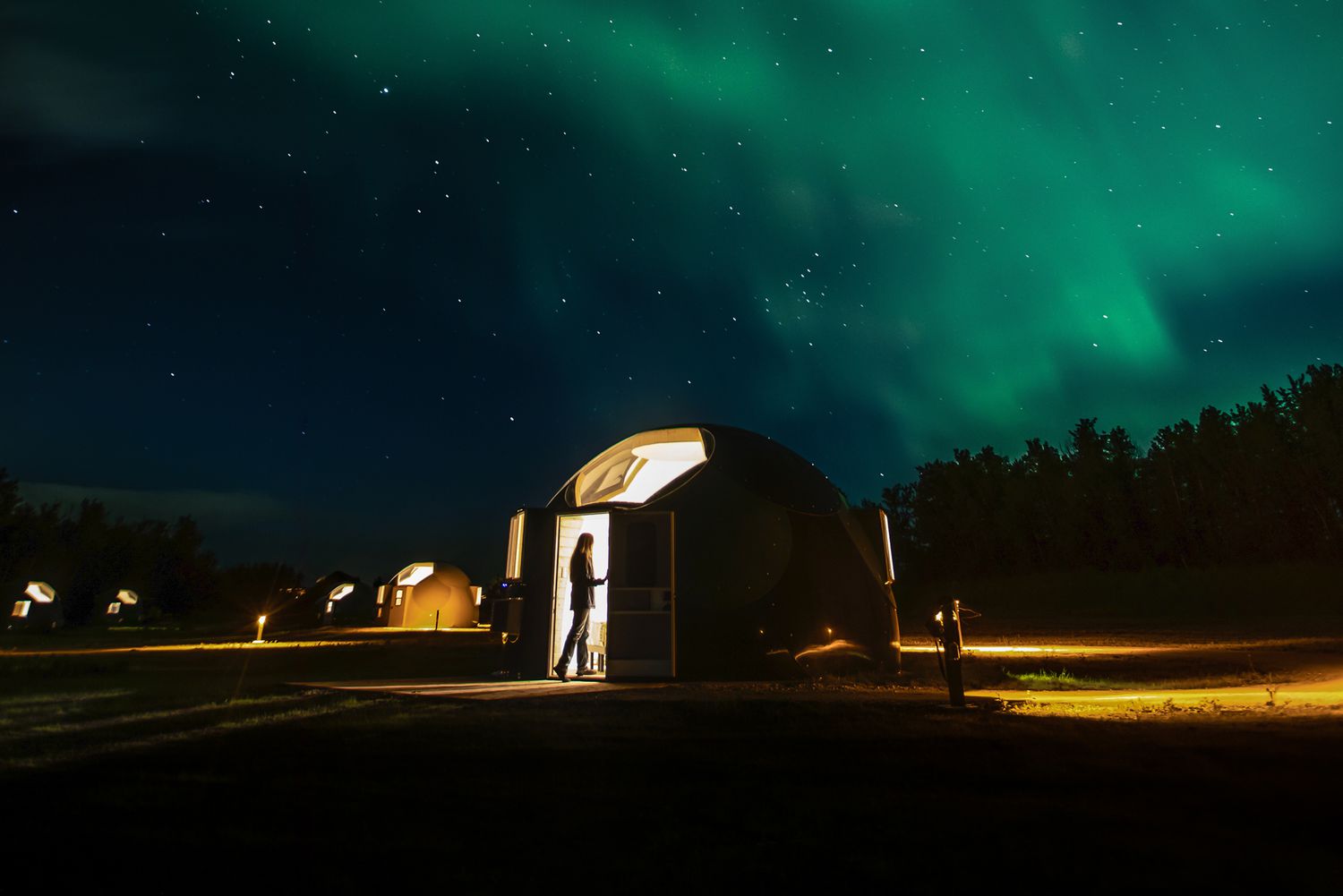 On my last day, I walked a few minutes down a quiet path to take photos of the new Sky Watching Domes. Set in a clearing, the shiny green-and-white structures looked a bit like a friendly Mars colony: six domes with king beds and two family suites, all with plenty of space between them.